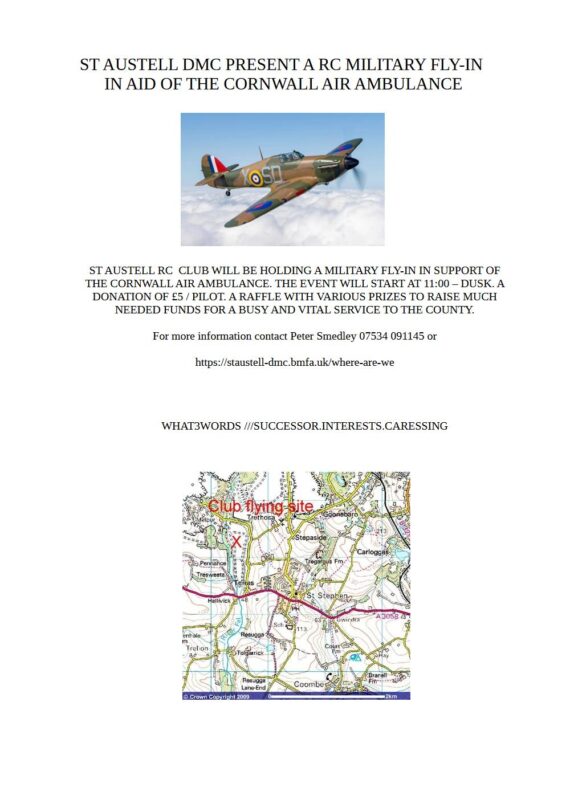 St Austell DMC invite all RC pilots to join us in a charity fly-in. This is in aid of Cornwall Air Ambulance. The air ambulance is a vital emergancy service providing critical care in a timely manner.